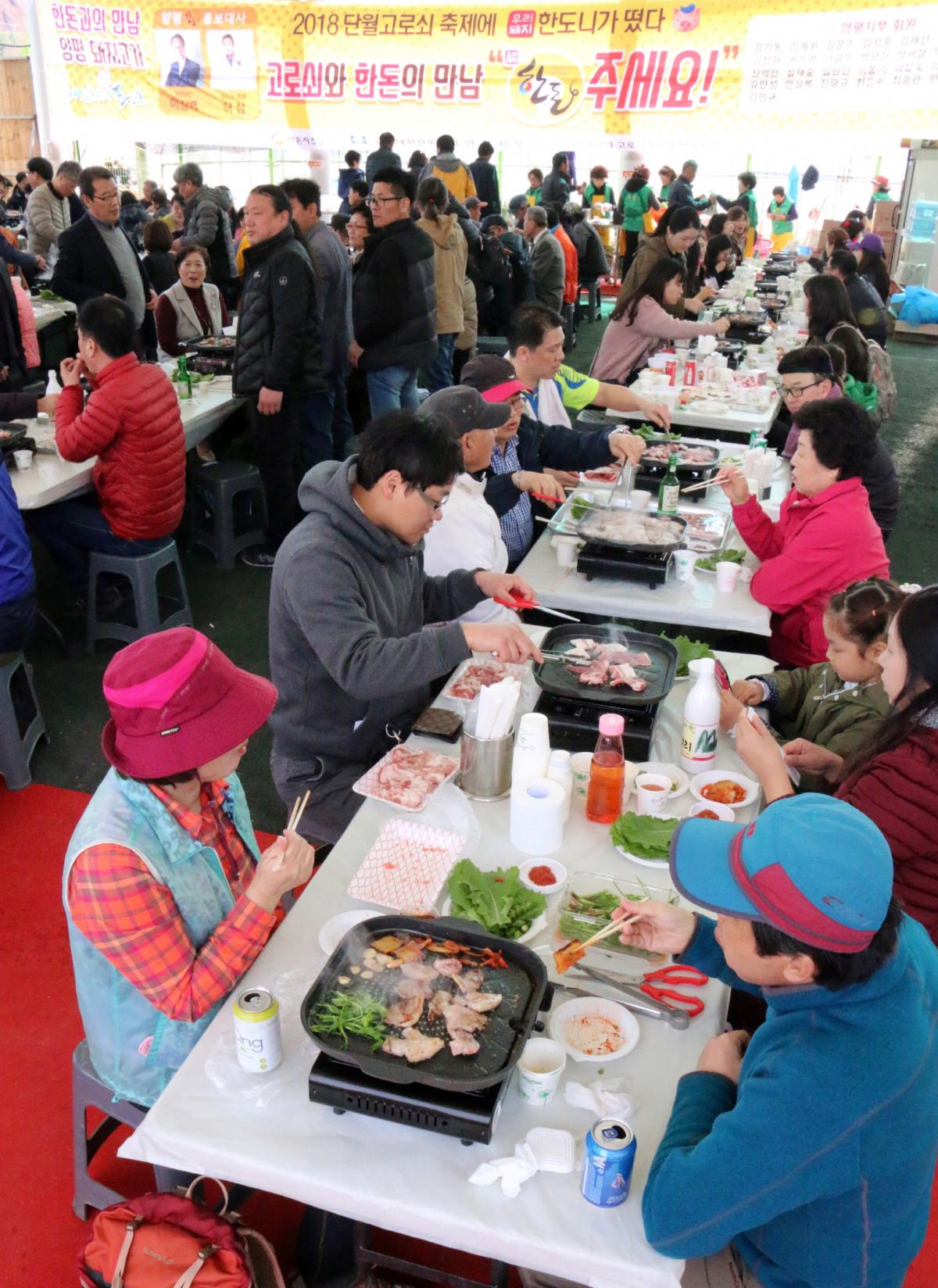 단월레포츠공원에서 열린 ‘제 19회 양평단월 고로쇠축제’를 방문한 관람객들이 한돈을 맛보며 즐거운 시간을