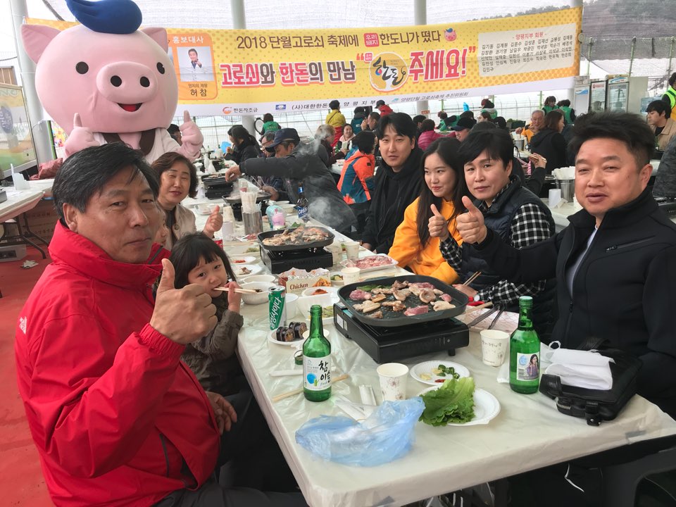 보내고 있다. 이 날 한돈자조금은 지역상생을 위한 지역특화 홍보사업의 일환으로, 양평단월 고로쇠축제에서 한돈 구이존, 아름다운 농장 및 돼지사진