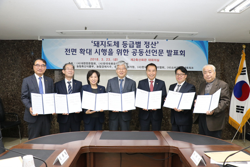 이번 공동선언은 대한한돈협회와 한국육류유통수출협회 양협회가 2015년 7월 30일 체결한‘돼지가격 정산기준 등급제 전환 협약서’와 2015년 12월 9일 양돈농협이 체결한‘돼지가격 정산기준 등급제 전환 협약서’에 따른 돼지도체 등급별 정산 전면 확대 시행을 위해 협력키로 하고 공동선언을 발표한 것이다.