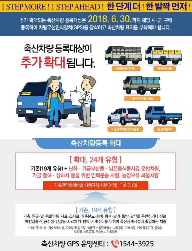 축산차량은 6월 30일까지 축산차량 등록해야시군구에 등록 후 GPS 장착, 축산차량 표지 부착....7월 1일부터 단속 예상