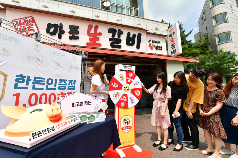 한돈인증점 1000호점 돌파 기념으로 진행된 이번 기념식에는 한돈자조금 대의원회 배상종 의장의 인사말을 시작으로 1000호점 운영사업주에게 한돈인증점 1000호점 기념패를 수여하는 기념패 수여식 및 한돈인증점 인증서 전달식이 있었다. 또한 한돈인증점을 찾은 방문객 대상으로 한돈 룰렛 이벤트도 실시하여 이벤트 참여자에게 한돈몰 할인권 및 여름에 꼭 필요한 핸디선풍기 등을 배포해 큰 호응을 이끌었다.