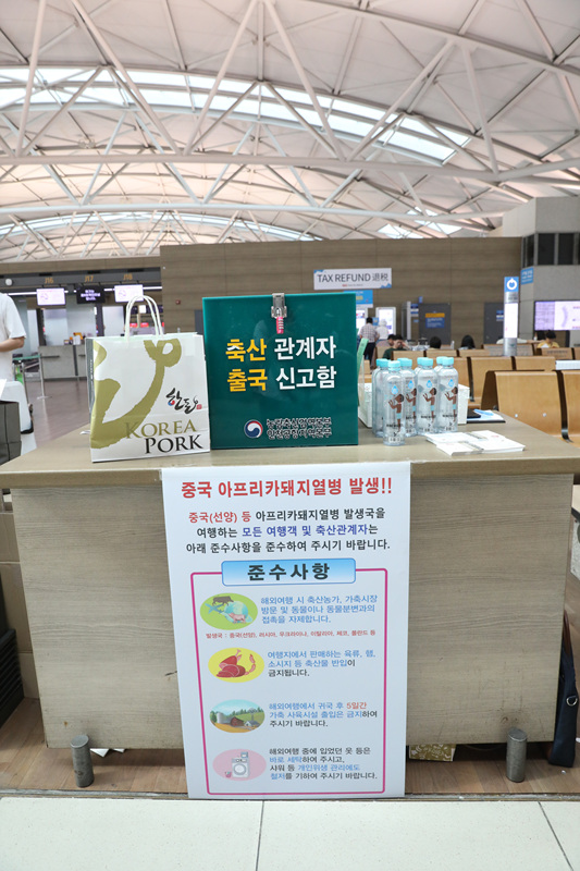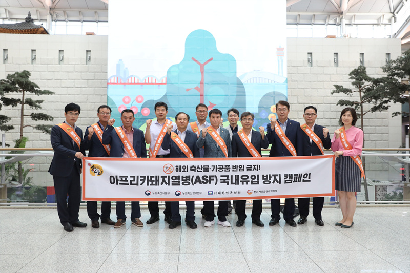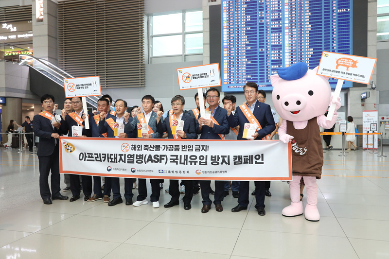 농림축산식품부(이하 농림부, 장관 이개호)와 대한한돈협회(이하 한돈협회, 회장 하태식)는 31일(금) 인천국제공항에서 농림축산검역본부와 합동으로 아프리카 돼지열병(ASF)의 국내 유입을 막기 위한 캠페인에 나섰다.