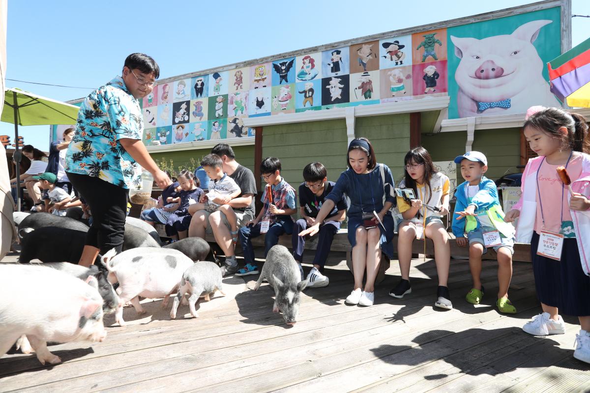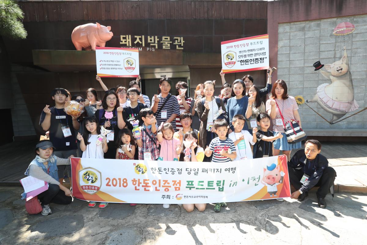 “한돈과 함께한 맛있는 가을여행”...한돈인증점 푸드트립 성료 -한돈자조금, 이천‧안성‧원주에서 9회에 걸친 한돈인증점 테마 여행 진행- ∎‘한돈인증점 푸드트립’ 예매시작 15분만에 매진...소비자 대상 뜨거운 반응 얻어 ∎한돈인증점 먹방의 기회와 돼지 테마 관광지 체험 동시 제공으로 큰 호응 한돈농가 비영리단체 한돈자조금관리위원회(이하 한돈자조금, 위원장 하태식)는 9월 8일(토)부터 10월 14일(일)까지 돼지 테마 관광지와 한돈인증점을 무료 체험하는 패키지 여행 ‘한돈인증점 푸드트립’을 성황리에 종료했다고 밝혔다. 이천‧안성‧원주에서 총 9회에 걸쳐 진행된 푸드트립은 한돈을 사랑하는 소비자 대상으로 한돈인증점에서 한돈 요리를 먹고, 돼지 테마 관광지를 방문해 다양한 체험 활동을 무료로 즐길 수 있도록 구성했다. 한돈인증점은 국내산 돼지고기만을 취급하는 음식점과 축산물 판매장을 대상으로 위생 및 관리 상태를 점검해 우수한 매장을 인증하는 제도로 최근 1000호점을 돌파하며, 소비자 신뢰를 강화하고 있다. 온라인 쇼핑몰 11번가를 통해 예매가 진행된 이번 푸드트립은 오픈한지 15분 만에 매진될 만큼 소비자 참여 열기가 뜨거웠다. 9월 8,9,15일(3회)에 진행된 이천 한돈인증점 푸드트립은 이천 돼지 박물관을 방문해 돼지 공연 관람과 돼지 에코인형 만들기 등을 체험하고, 한돈인증점인 도드람 바비큐하우스에서 한돈을 맛보는 코스로 진행됐다. 이어 9월 16일, 30일, 10월 3일(3회)에 안성에서 진행된 푸드트립은 안성팜랜드 방문과 한돈인증점 마당냉면갈비에서 한돈 갈비를 맛본 후 안성맞춤박물관을 방문하는 코스로 구성됐다. 마지막으로 원주 한돈인증점 푸드트립은 10월 9일, 13일, 14일(3회)에 진행되었으며, 돼지문화원을 방문해 소시지 만들기, 피그레이싱 등을 체험하고 한돈인증점 금돈 구이식당에서 한돈을 맛봤다. 이후 원주 관광명소인 소금산을 방문해 참가자들의 뜨거운 호응을 얻었다. 하태식 위원장은 “한돈인증점 1,000호점 돌파를 기념해 더 많은 국민들에게 한돈인증점과 한돈을 알리기 위해 이번 행사를 기획했다”며, “한돈인증점 푸드트립을 통해 국민이 안심하고 먹을 수 있는 한돈인증점 방문이 확산되어, 소비자들이 언제 어디서든 '한돈인증점' 표시만 봐도 한돈에 대한 믿음과 소비가 촉진될 수 있기를 기대한다”고 밝혔다. 9월 8일(토) 한돈자조금은 ‘2018 한돈인증점 푸드트립 in 이천’ 당일 패키지 여행의 첫 포문을 성공적으로 열었다. 이 날, 경기도 이천에 위치한 돼지박물관에서 참가자들이 한돈을 사랑하는 마음을 담아 손하트를 만들고 있다. 9월 16일(일) 한돈자조금은 ‘2018 한돈인증점 푸드트립 in 안성’ 당일 패키지 여행을 시작했다. 안성 한돈인증점 푸드트립에 참가한 참가자들이 안성팜랜드 앞에서 즐겁게 포즈를 취하고 있다. 10월 9일(화) 한돈자조금은 ‘2018 한돈인증점 푸드트립 in 원주’ 당일 패키지 여행까지 성황리에 마쳤다. 원주 한돈인증점 푸드트립에 참가한 참가자들이 돼지문화원 앞에서 기념사진 촬영을 갖고 있다. ‘2018 한돈인증점 푸드트립’당일 패키지 여행에 참가한 참가자 가족이 점심시간 한돈인증점에서 한돈이 맛있게 익기를 기다리고 있다. ‘2018 한돈인증점 푸드트립 in 이천’ 당일 패키지 여행 중 경기도 이천에 위치한 돼지박물관에서 참가자 가족이 돼지에코인형을 만들고 있다. ‘2018 한돈인증점 푸드트립 in 이천’ 당일 패키지 여행에 참가한 참가자들이 이천 돼지박물관에서 돼지에게 먹이를 주고 있다.