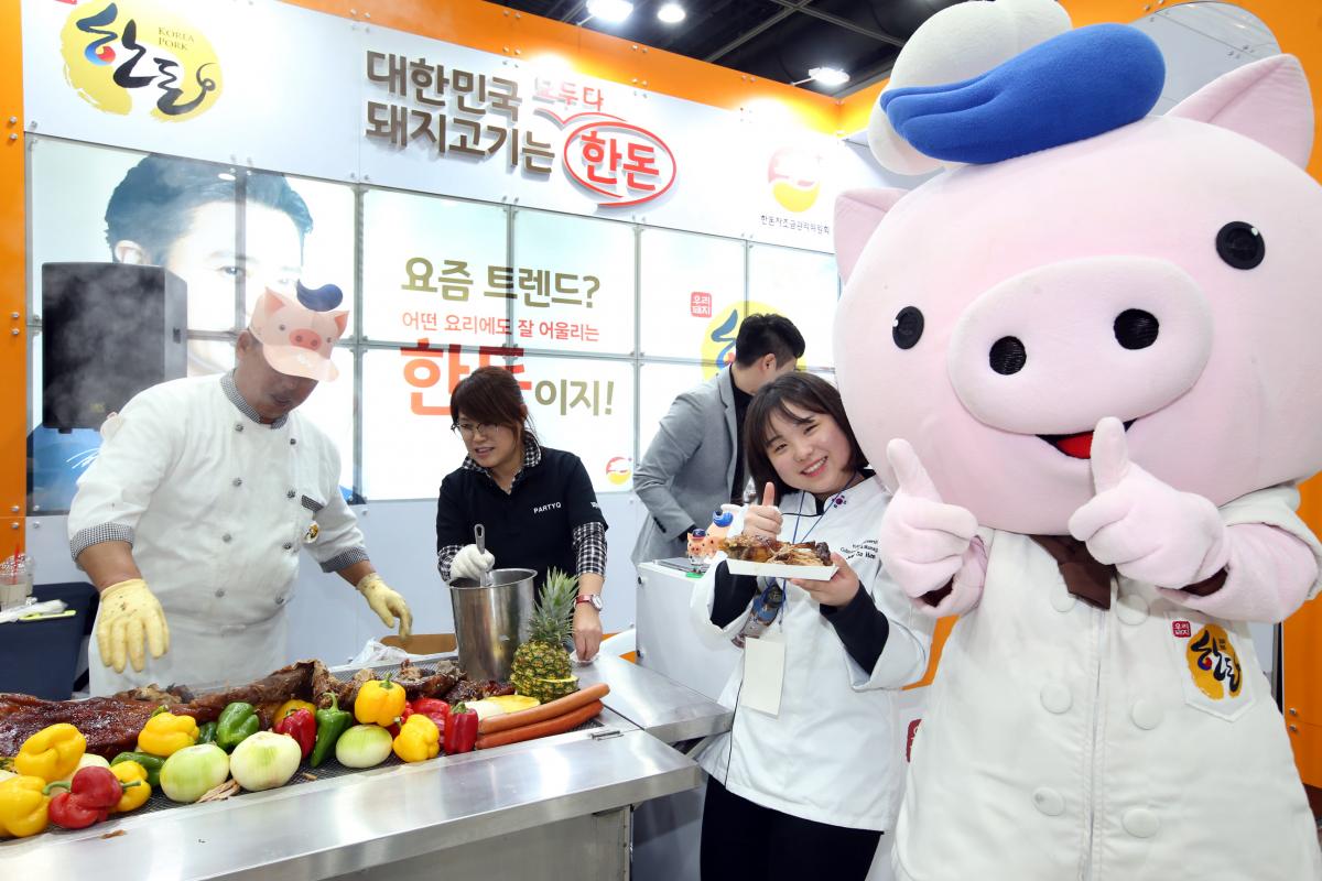 한돈자조금이 지난 8일(목)부터 10일(토)까지 한국농수산식품유통공사 주관으로 서울 양재동 aT센터 제2전시장에서 열린 제15회 대한민국향토식문화대전&남북음식문화축제에 참가해 한돈의 영양학적 우수성과 맛을 널리 알리고, 한돈 소비 활성화를 위한 통돼지 바베큐 시식행사를 펼쳤다.