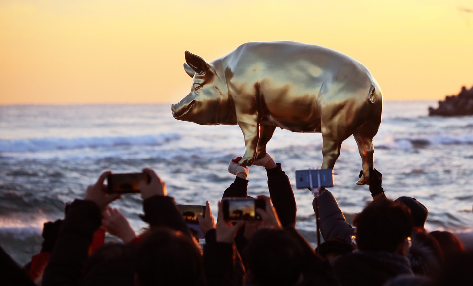이 날 행사가 열린 정동진에는 해돋이 명소답게 30만명의 인파가 몰려 대성황을 이뤘다한돈자조금은 황금돼지 해를 상징하는 다채로운 행사를 마련해 새해 새벽부터 일출을 보기 위해 정동진을 찾은 관광객에게 즐거움을 선사했다.
