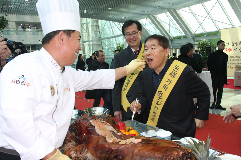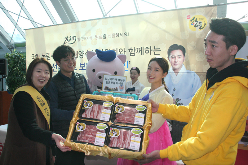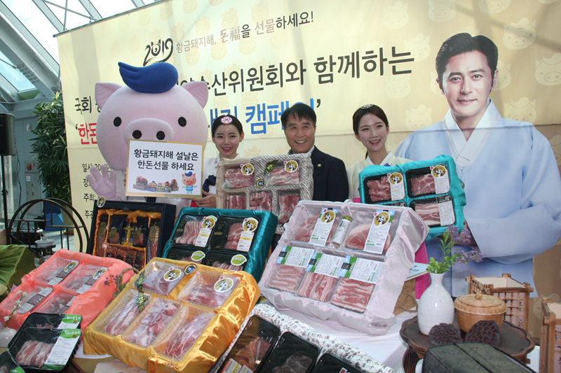 황금돼지해, 돈福을 선물하세요! 국회 농해수위와 ‘한돈 설 선물세트 보내기 캠페인’ 황주홍 농해수위 위원장 및 국회의원 참석, 어려운 상황 직면한 한돈 농가 응원 현장서 한돈 설 선물세트 주문 접수, 한돈 통돼지 바비큐 시식 등 열려