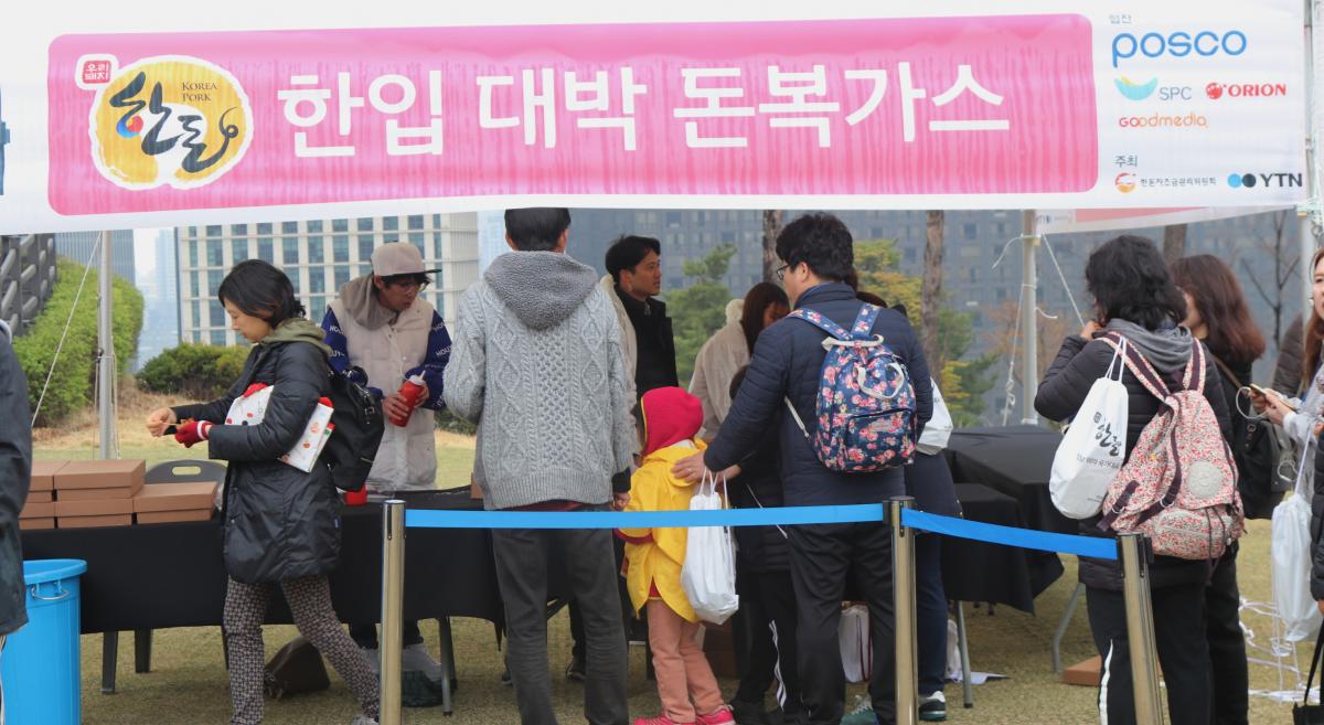 ▲ 맛있는 한돈 돈가스 ‘2019 한돈과 함께하는 남산걷기대회’에서 참가자들이 한돈 돈가스를 맛보기 위해 줄을 서 있다.