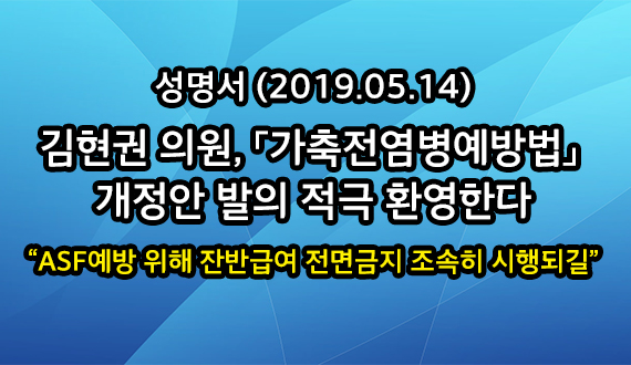 [성명서]김현권 의원, 「가축전염병예방법」 개정안 발의 적극 환영한다 |