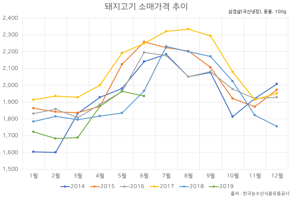 여름 성수기에도 돼지고기 가격은 하락세, 무슨 일이? |
