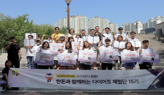 ▲ 한돈자조금, 한돈 다이어트 체험단 15기 성황리에 마무리 한돈자조금이 지난 7월 6일 한돈 다이어트 체험단 15기 해단식을 성황리에 종료했다. 한돈자조금은 한돈 저지방 부위인 안심·등심·뒷다리살로 식단을 조절하는 건강한 다이어트 문화 확산을 위해 매년 두 차례 한돈 다이어트 체험단을 운영하고 있다.