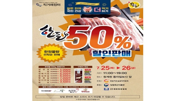 한돈자조금, 한돈 50% 할인 직거래장터 진행 |
