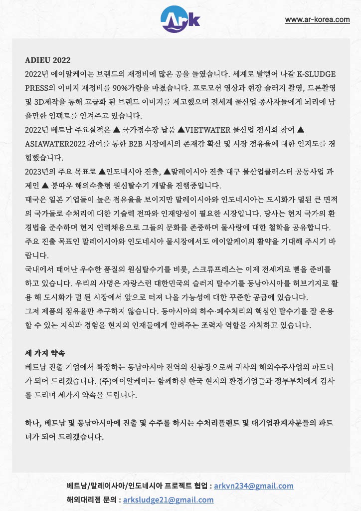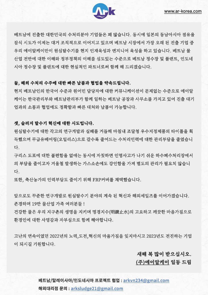 (주)에이알케이의 한국,베트남 본사 외 지사 121명 임직원 일동이 2022년 마무리와 2023년 계묘년 인사 올립니다.