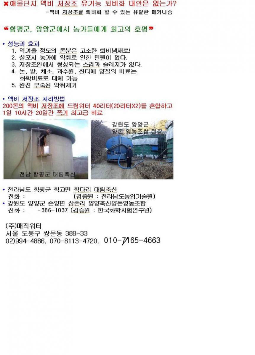 다음게시물 가축분뇨 방류시설 폭기조 및 액비조 거품문제 도와드립니다