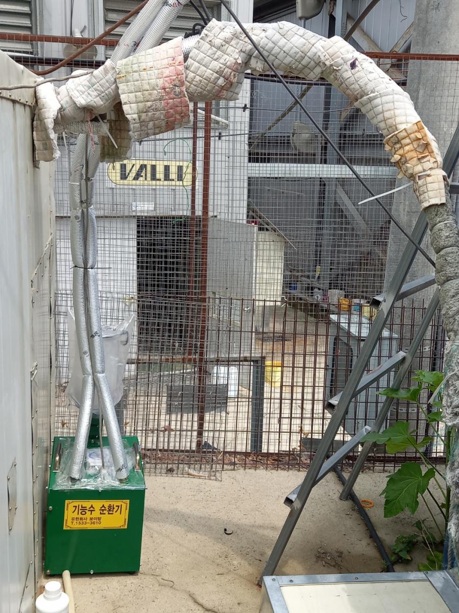음수용 물탱크의 물을 자체개발한 장치를 이용하여 물을 지속적으로 순환 정화하며 기능성있는 자화육각수로 변환하여줍니다.