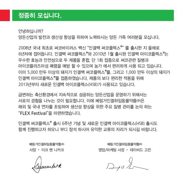 베링거인겔하임동물약품(주)은 오는 4월 25일 낮12시에 리베라 호텔에서 Flex Festival을 개최한다.