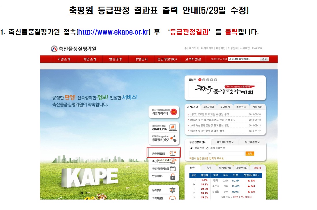 축평원 등급판정 결과표 쉽게 출력하세요(수정 5/29일자)