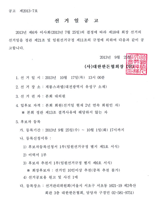 다음게시물 [공고]제 18대 회장 선거 선거인명부 열람기간 및 장소공고