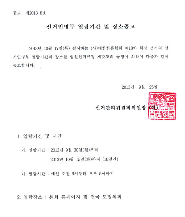 다음게시물 [공고] 본회 제18대 회장 선거 선거인명부 열람