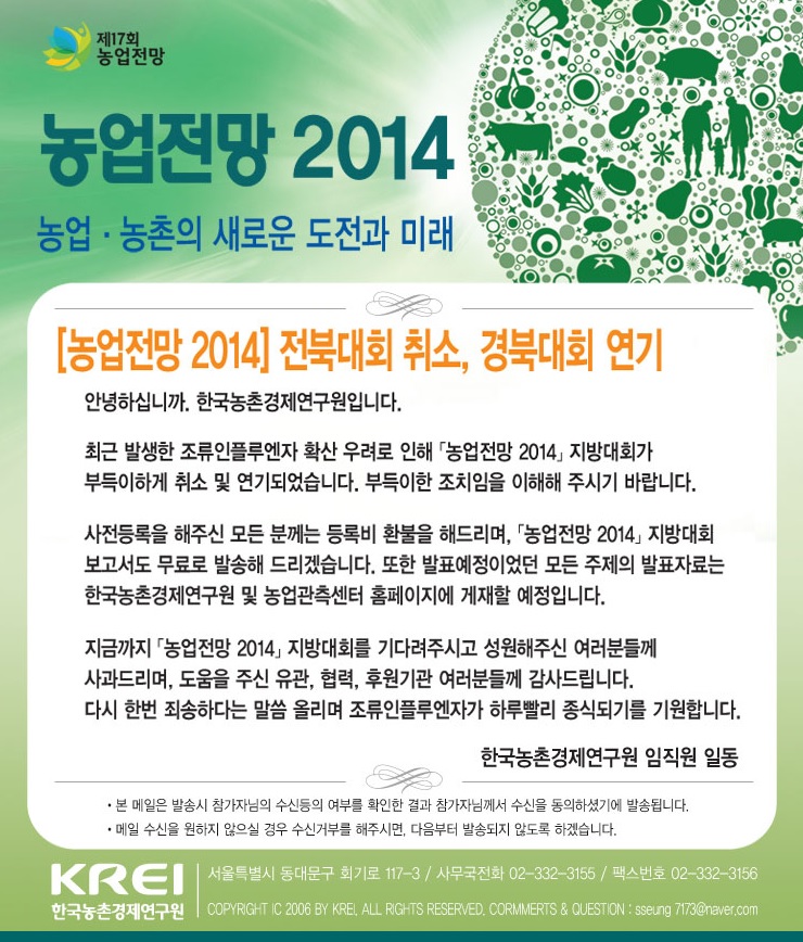 [알림] 농업전망 2014, 전북대회 취소 및 경북대회 연기