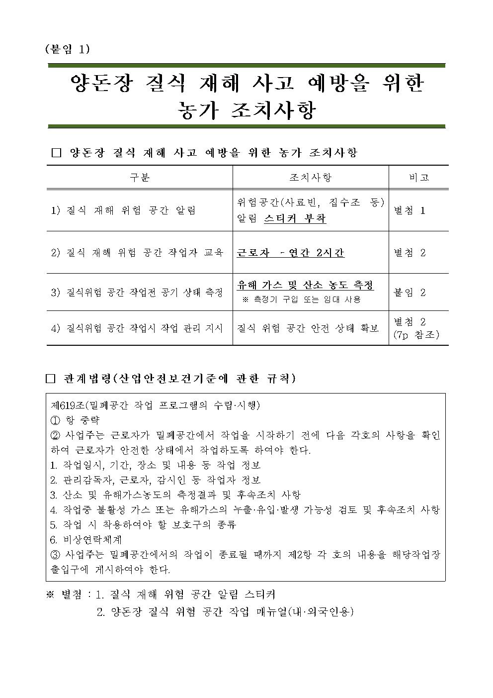 첨부파일 다운로드 312-31(시행) 양돈장 질식 재해 사고 예방 및 단속 대비 교육자료(2종),스티커 배부.pdf