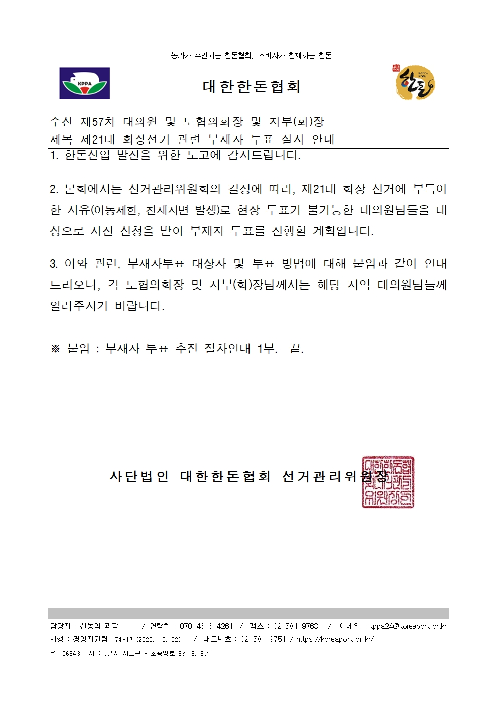 첨부파일 다운로드 174-17(시행) 제21대 회장선거 관련 부재자 투표 실시 안내.pdf