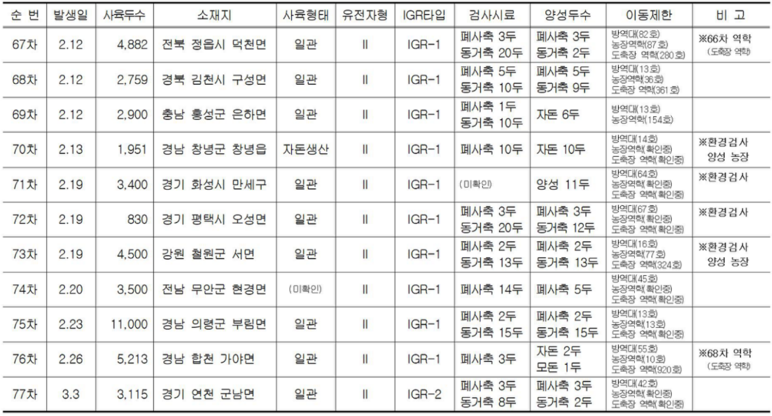 ※ 환경검사 양성 농장의 경우, 최종 확진 이후 업데이트 예정