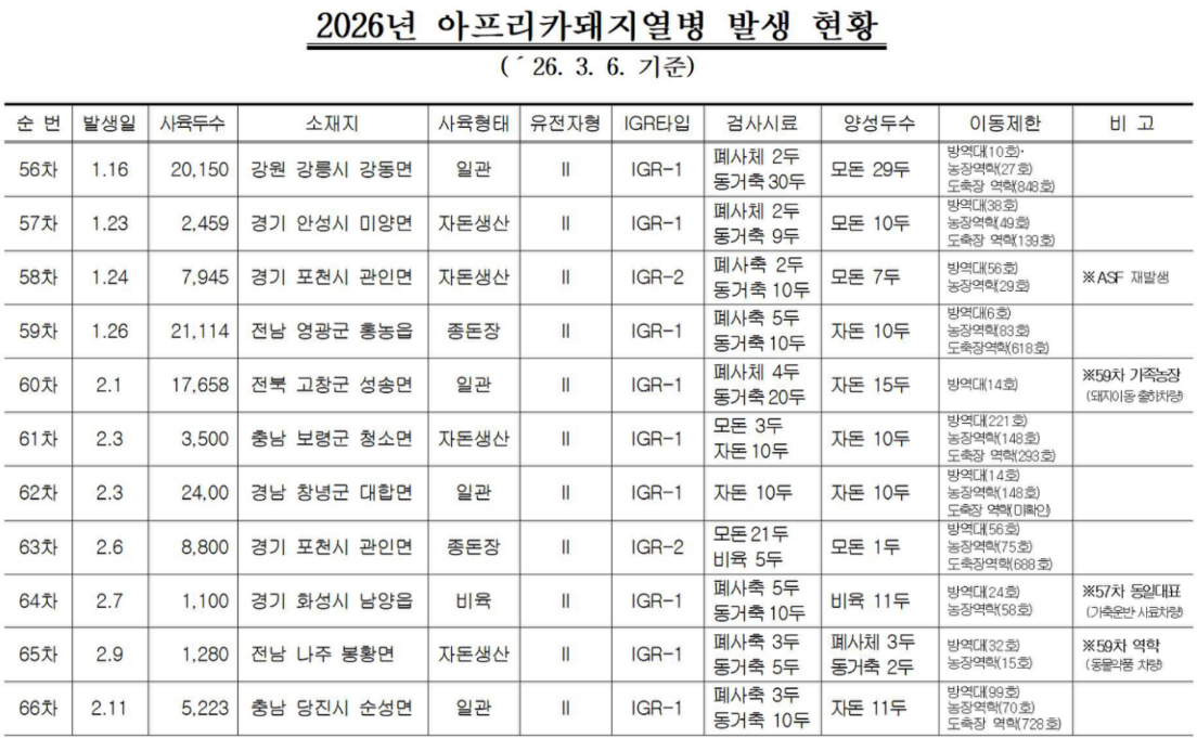 [ASF] 2026년 아프리카돼지열병 발생 현황