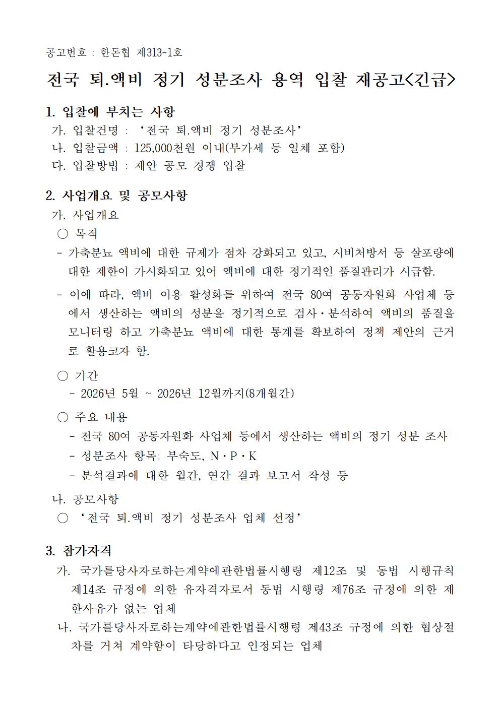 첨부파일 다운로드 313-1(붙임) 전국 퇴.액비 정기 성분조사 입찰 재공고.pdf