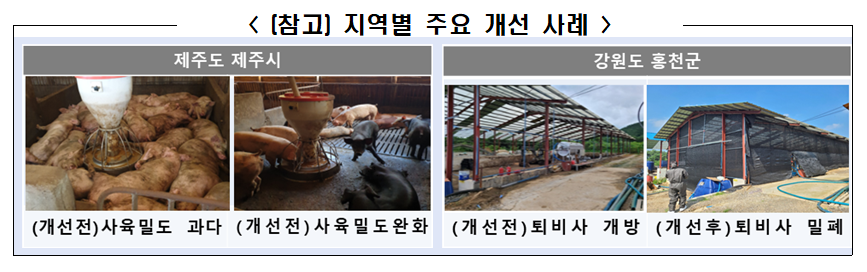 ㅇ (제주시 한림읍) 악취관리지역인 한림읍의 고질적 악취문제 해소를 위해 가축 사육밀도를 낮추고, 퇴비사 밀폐화 등 관리 강화를 통해 악취발생 빈도가 감소하고 암모니아 발생도 낮추었다* * 당초 암모니아 발생 평균 13.3ppm에서 최종 9.8ppm으로 33% 감소(월 2회 측정)