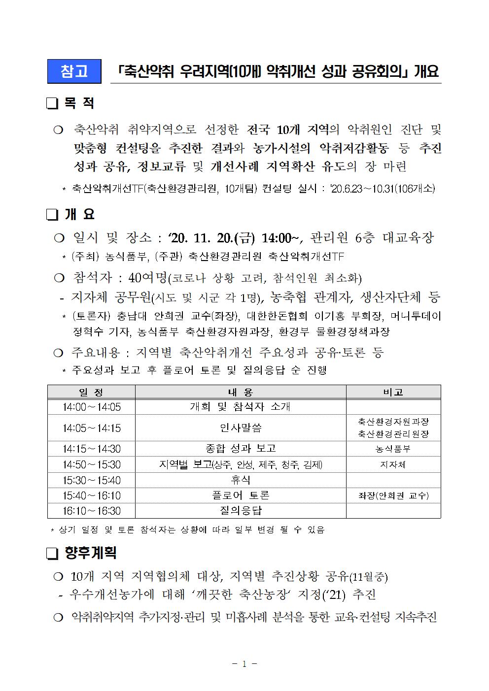 [농림부] 전국 10개 축산악취 우려지역 악취개선 성과 공유회의 개최(11.20) |