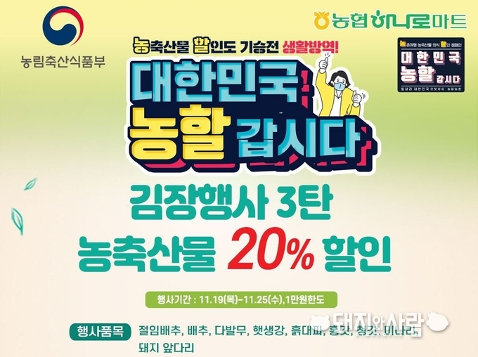 ▲ 농협 하나로마트 대한민국 농할갑시다 김장행사 20% 할인@하나로마트 홈페이지 갈무리
