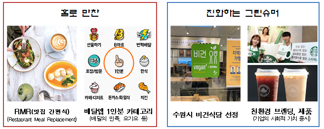 ▲ '21년 외식 경향 '홀로만찬', '진화하는 그린슈머'@농식품부
