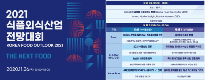 농식품부, 26일 2021 식품·외식산업 전망대회 통해 내년도 외식 경향 발표..홀로만찬, 그린슈머, 취향소비 등 선정