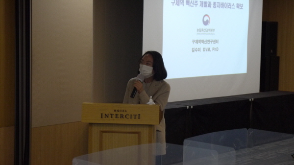 김수미 농림축산검역본부 박사는 이날 발제를 통해 구제역 백신 현황 등을 설명하며, 한국형 구제역 백신이 상용화될 수 있도록 노력하고 있다고 밝혔다.