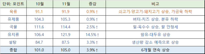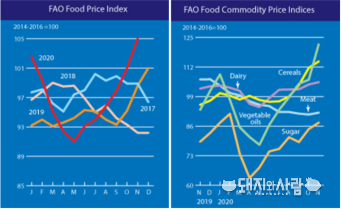 FAO, 11월 세계식량가격지수 발표, 전월 대비 3.9% 증가...육류를 포함한 모든 품목 가격 상승