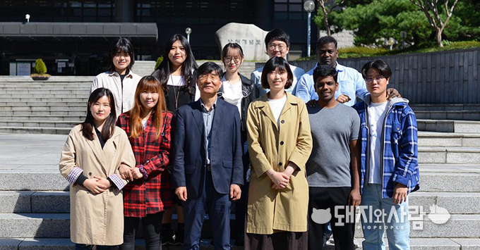 ▲ 건국대학교 KU융합과학기술원 박찬규 교수(사진 앞쪽 왼쪽에서 세 번째)와 연구팀@건국대학교