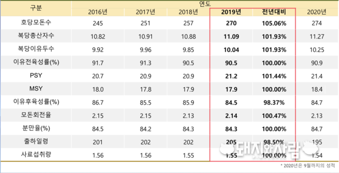한돈협회, 2019-2020 한돈팜스 전산성적 분석 발표...'19년 PSY 개선 불구 MSY 제자리, 올해는 모두 개선