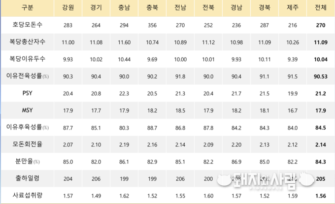 지난해 양돈 생산성적이 가장 높은 지역은 OO!