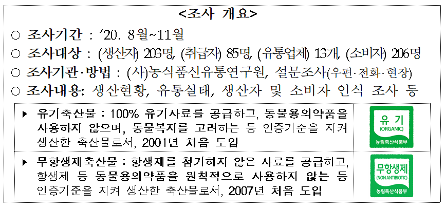 [농식품부] 유기‧무항생제 축산물 생산‧유통 실태조사 결과 |
