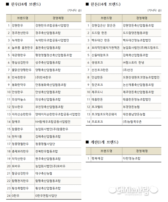 2021년 우수 한돈 브랜드 14개가 선정되었다 |