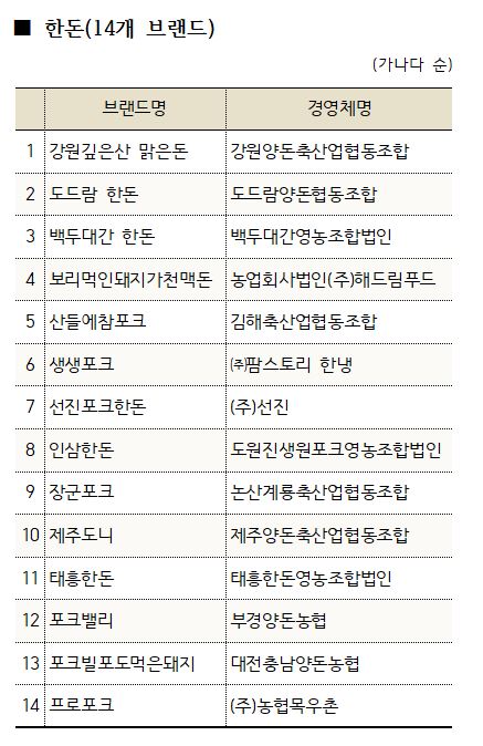 한돈 인증 브랜드 14개 선정 소시모, 내년 1년간 인증 소비자시민모임이 선정한 14개 한돈브랜드