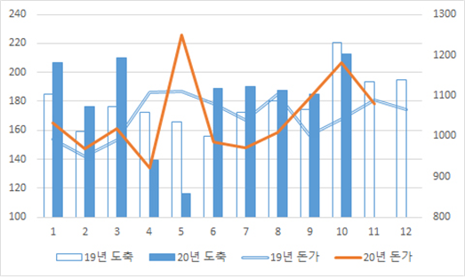 [송년특집①] ASF‧코로나가 휩쓴 세계 양돈 亞 3국 ASF로 세계 생산량 2년째 ↓ 中 수입 급증에 돈육 교역량 사상 최대 美‧EU 팬데믹에 수급 타격, 돈가 휘청 獨 ASF로 수출 중단, EU 시장 이중고 中 두수 증가, 수출‧수입국 모두 주목 ○…올해 세계 양돈업은 ASF에 코로나 19까지 겹치면서 어느 해보다 높은 불확실성을 안고 시작했다. 실제 각국의 양돈시장은 올해 한 치 앞을 내다보기 힘들 높은 변동성을 지속했다. 그리고 한해가 마무리 돼 가는 지금, 2021년은 희망보다는 올해의 불안이 이어질 가능성이 높아 보인다. 2020년이 세계 양돈시장에 무엇을 남겼는지 돌아봤다.…○ ■생산량, 亞 ASF 여파로 2년째 감소=중국이 18년까지만 해도 한해 5천만톤 이상 돼지고기를 생산하다 ASF 이후 19년(4천255만톤)에 이어 올해(3천800만톤 추정)는 더 큰 폭으로 생산이 줄었다. 이는 역시나 ASF 피해가 컸던 베트남(281만톤→238만톤→224만톤)과 필리핀(160만톤→158만5천톤→127만5천톤)도 마찬가지였다. 아시아 내에서 돼지고기 소비량이 가장 많은 이들 세 나라가 모두 ASF 여파로 생산이 준 것이다. 반면 주요 생산국 중 이들 아시아 국가들을 제외하고 유럽연합(EU)와 미국, 브라질, 러시아, 캐나다 모두 생산이 증가했다. 이들 국가들이 아시아 주요 생산국들의 감소분을 일부 상쇄했지만 워낙 중국이 세계 생산량에서 절대적인 비중을 차지하고 있으며 생산 감소분도 커 올해 세계 돼지고기 생산량은 9천787만톤으로 2년 연속 감소할 것으로 추산되고 있다. ■교역 물량은 사상 최고=올해 돼지고기 생산량이 크게 감소한 중국, 베트남, 필리핀은 모두 돼지고기 소비량이 많은 나라들이라는 공통점이 있다. 따라서 줄어든 생산량만큼 수입을 크게 늘려 소비를 충당해야 했다. 특히 중국은 올해 수입물량이 480만톤에 달할 것으로 전망됐는데 ASF 이전인 17년 150만톤과 비교하면 무려 3배 이상 많고 지난해 물량의 2배(95.8%)에 가까운 양이다. 실제 중국 관세청에 따르면 10월말 돼지고기 수입물량은 362만톤으로 일년전과 견줘 80.4% 많았다. 또 대부분의 돼지고기 소비량을 자국 산으로 충당, 수입물량이 많지 않았던 베트남은 지난해 7만3천여톤서 올해 16만톤으로 2배 이상 수입을 늘렸다. 이처럼 수출국들의 생산은 증가한 동시에 이들 ASF 피해 국가들의 수입육 수요는 증가하면서 올해 세계 돼지고기 교역물량은 역대 최고치를 기록하고 있다. 세계 돼지고기 수출물량은 ASF 피해가 본격화하기 시작한 19년에는 전년비 13.2% 증가한 933만5천톤을, 올해는 이보다 15.9% 더 많은 1천81만6천톤으로 추산되고 있다. 이 중 EU는 385만톤으로 전년 대비 8.5%, 미국은 333만톤으로 일년전보다 16.3% 증가, EU보다 미국의 증가가 더 두드러질 것으로 전망되고 있다. 이는 EU의 경우 19년부터 중국으로의 수출이 본격적으로 늘기 시작, 19년에 이미 전년 대비 25% 증가하면서 올해 상대적으로 추가 증가여력이 낮았던 때문이다. 이에 비해 미국은 중국과의 무역분쟁으로 중국 호재를 누리지 못하다 올해 1단계 무역협정을 통해 중국 수출이 본격적으로 늘기 시작한 것이다. 미국, EU만이 아니다. 브라질은 올해 수출이 전년 대비 무려 40% 가량 증가가 예상되는데 이는 전적으로 중국으로의 수출이 증가한 때문이다. ■美, ASF보다 무서운 코로나=전 세계를 강타한 코로나 19의 충격파에 양돈시장도 피해갈 수 없었다. 특히 최대 수출국인 미국과 유럽은 아시아 국가, 특히 중국의 ASF 피해가 올해 절정에 달하면서 중국 수출이 급증하는 호재를 누렸음에도 어느 해보다 위태위태한 한해를 보냈다. 이는 무엇보다 코로나가 만든 위기였다. 미국의 경우 올해 돼지 값 흐름에 고스란히 코로나의 흔적이 남았다. 3월까지만 해도 대 중국 수출 증가로 돼지 값은 전년 대비 3~7% 상승하며 순조로운 출발을 보였다. 그러나 코로나 팬데믹 상황 속에서 수요에 타격을 입은 돼지고기 시장은 순식간에 연중 최저치 약세로 전환되나 싶더니 5월엔 4월 대비 무려 69% 급등하는 롤로코스터 시장을 형성했다. 코로나는 소비에 미치는 영향도 컸지만 돼지고기 생산 작업장 내 집단 감염 사태를 유발, 공급 체계도 흐트러뜨린 때문이다. 즉 5월 본격화된 작업장 내 코로나 감염으로 인해 공급이 급격히 감소하면서 돈가 폭등을 불러온 것이다. 돈가는 이후 생산이 정상화되면서 다시 하락하는가 싶더니 이번에는 독일 내 ASF 발생과 계속된 중국 수출 호조로 다시 상승을, 그리고 최근에는 코로나 재확산세에 다시 상승세가 꺾이면서 올해 내내 그야말로 널뛰기 시장을 형성했다.