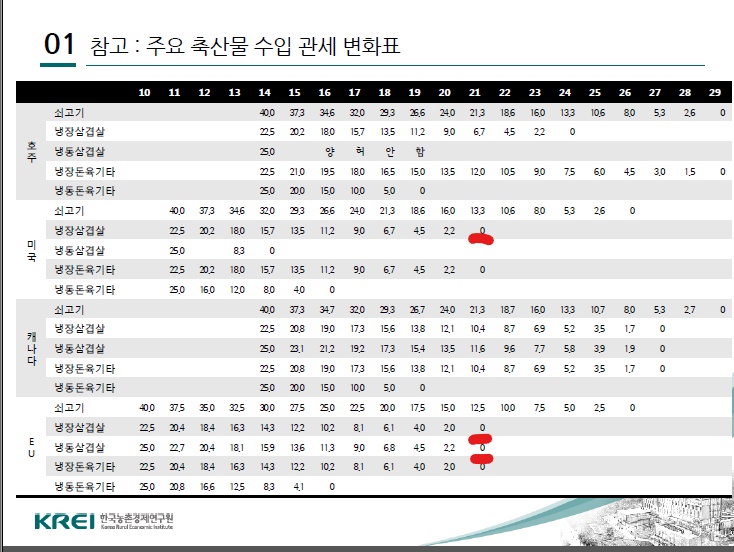 축산물 수입 관세 변화표