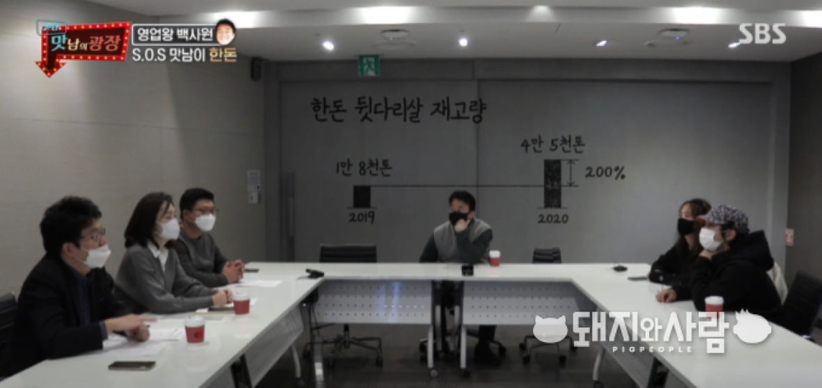 한돈 뒷다릿살 적체 해소를 위해 백종원과 방탄소년단이 만났습니다.