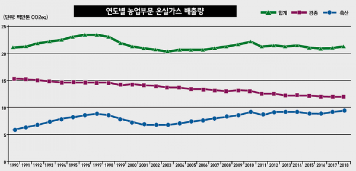 농림축수산업과 기후변화 ‘필요성은 알지만 몰라서 못해’ 저탄소농업정책 인지도 낮아…선택형 공익직불제 연계한 보상지급 필요성 대두 경종, 1520만톤CO2eq→1180만톤CO2eq로 감소 축산, 580만톤 CO2eq→940만톤CO2eq로 증가 농업분야 탄소저감 위한 제도적 장치 필요 349만 톤CO2eq(이산화탄소 상당량). 2030국가온실가스 감축목표에 따라 앞으로 10년간 농업분야에서 감축해야 하는 탄소의 양이다. 매우 부담이 되는 목표지만, 이는 1차 목표로 정부가 제시한 2050년 탄소중립사회 실현을 위해 상향조정될 가능성이 매우 높다. 이에 농림축수산업 분야 온실가스문제를 짚어보고, 향후 탄소저감을 위한 제도적 장치와 지원방안 등을 살펴봤다. ■ 농축산업
