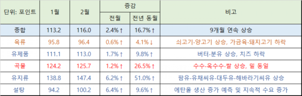 2월 세계식량가격 9개월 연속 상승...돼지고기는 하락 |