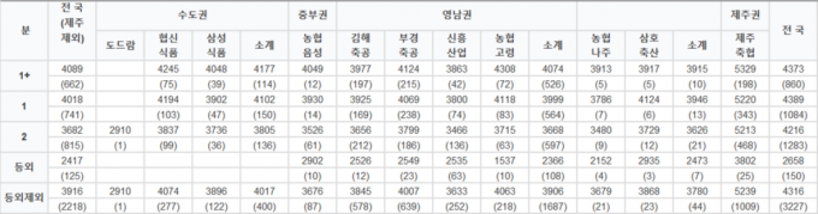 이날 안성공판장 1(2910)가 전체 2,218두 가격에 미치는 영향은 0.045%에 불과합니다. 수학적으로는 사실상 가격에 영향이 없다고도 볼 수 있습니다.