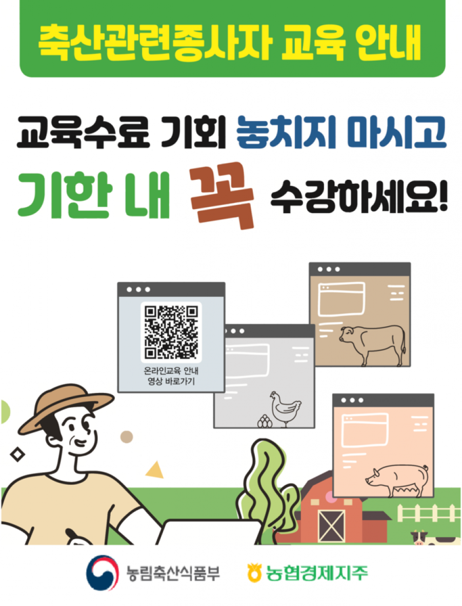 '20년 축산관련종사자 의무교육 미이수자, 6월까지 꼭 수강하세요!