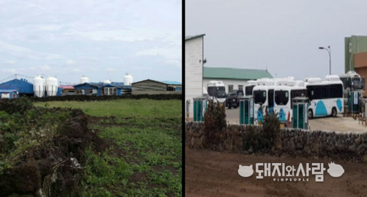 제주시 관내 양돈장() 폐업 후 관광버스 주차장()으로 변한 부지@제주시