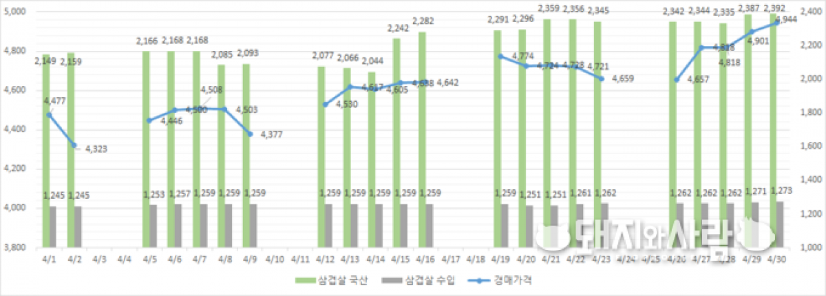 지난달 4월 돼지고기, 국내 생산·수입 모두 줄었다 |